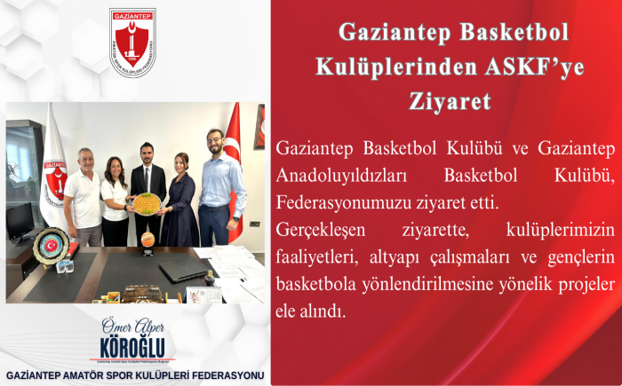 Gaziantep ASKF olarak, şehrimizde basketbolun gelişmesi ve gençlerimizin bu branşa kazandırılması için kulüplerimizle iş birliğini sürdürmeye devam edeceğiz.