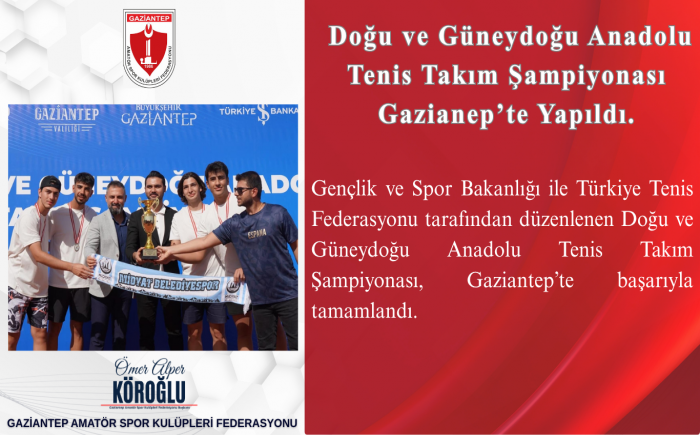 Gençlik ve Spor Bakanlığı ile Türkiye Tenis Federasyonu tarafından düzenlenen Doğu ve Güneydoğu Anadolu Tenis Takım Şampiyonası, Gaziantep’te başarıyla tamamlandı.
