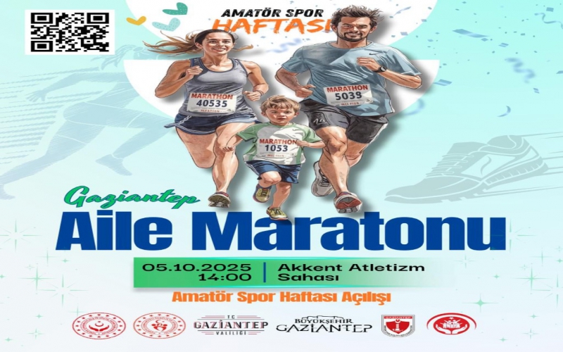 Gaziantep, 05 Ekim 2025 Pazar günü büyük bir spor şölenine ev sahipliği yapacak. Amatör Spor Haftası açılış etkinliği kapsamında düzenlenecek olan Gaziantep Aile Maratonu, saat 14.00’te Akkent Atletizm Sahası’nda gerçekleştirilecek.