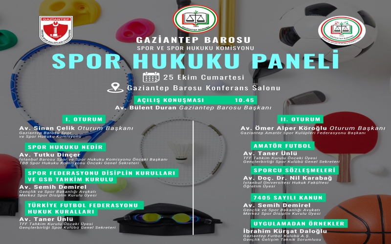 Gaziantep Barosu Spor ve Spor Hukuku Komisyonu ve Gaziantep Amatör Spor Kulüpleri Federasyonunun ortak düzenlediği “Spor Hukuku Paneline” katılımınızdan onur duyarız.