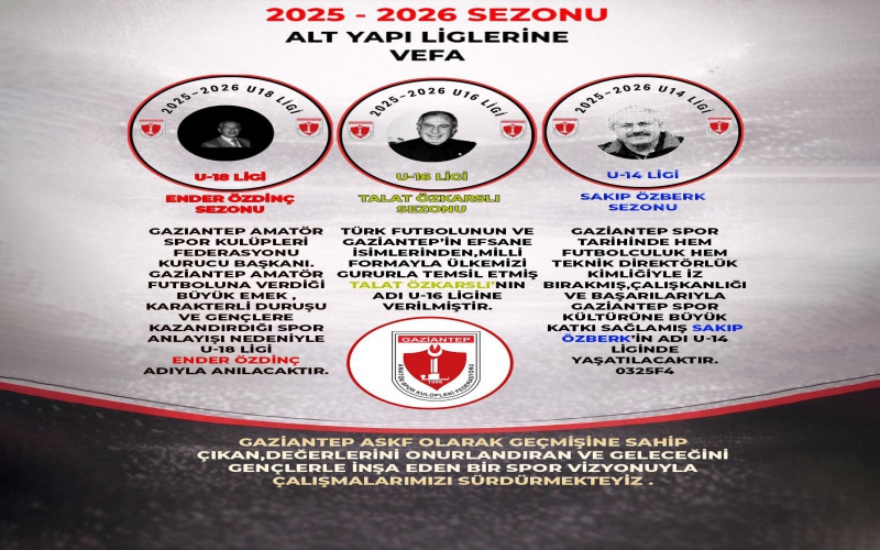 2025–2026 Sezonu altyapı liglerimize, spor tarihimizde iz bırakmış üç kıymetli ismin adını veriyoruz.