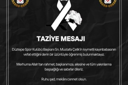 Düztepe Spor Kulübü Başkanı Sn. Mustafa Çelik’in kıymetli kayınbabasının vefat ettiğini derin bir üzüntüyle öğrenmiş bulunmaktayız. Merhuma Allah’tan rahmet, başkanımıza, ailesine ve tüm yakınlarına b...