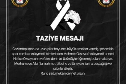Gaziantep sporuna uzun yıllar boyunca büyük emekler vermiş, şehrimizin spor camiasının kıymetli isimlerinden Mehmet Özsayıcı’nın kıymetli annesi Hatice Özsayıcı’nın vefatını derin bir üzüntüyle öğrenm...