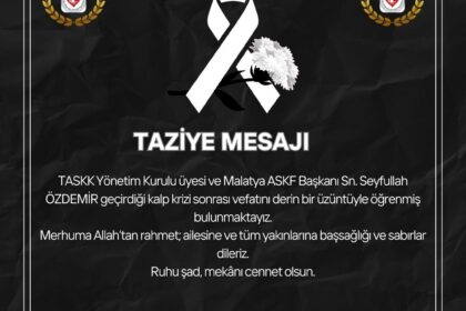 TASKK Yönetim Kurulu üyesi ve Malatya ASKF Başkanı Sn. Seyfullah ÖZDEMİR geçirdiği kalp krizi sonrası vefatını derin bir üzüntüyle öğrenmiş bulunmaktayız. Merhuma Allah’tan rahmet; ailesine ve tüm yak...