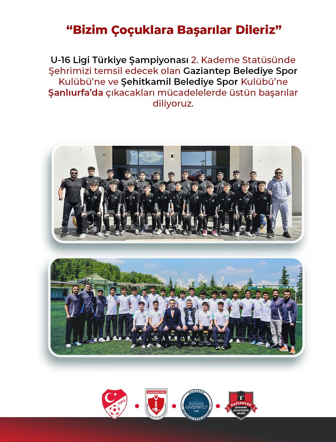 Gaziantep futbolunun geleceğini temsil eden genç sporcularımızın azmi, disiplini ve mücadele ruhu ile şehrimizi en iyi şekilde temsil edeceklerine inancımız tamdır.