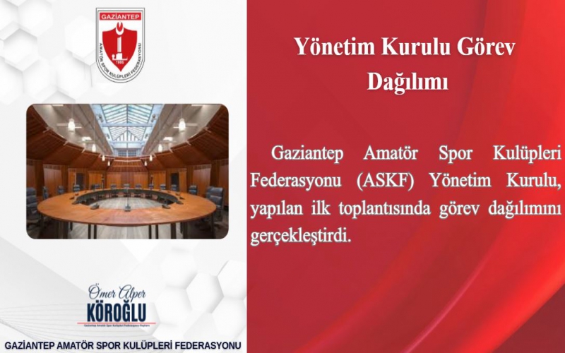 Gaziantep Amatör Spor Kulüpleri Federasyonu (ASKF) Yönetim Kurulu, yapılan ilk toplantısında görev dağılımını gerçekleştirmiştir.
