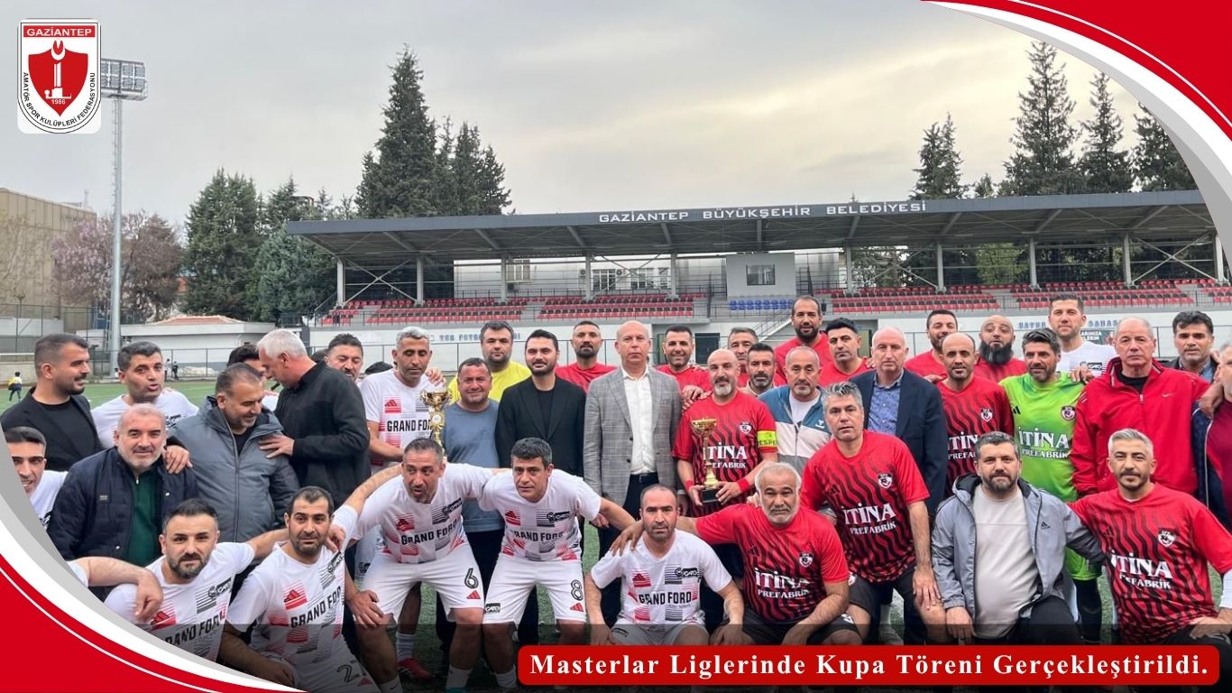 Gaziantep Masterlar 1. Lig Şampiyonu Gazişehir Masterlar ile 2. Ligi ikinci sırada tamamlayarak bir üst lige yükselen Gaziantep Triko Masterlar takımlarına, ASKF Başkanımız ve Gaziantep Büyükşehir Belediye Başkan Vekilimiz Sn. Halil Uğur ve değerli spor insanları ile birlikte kupaları takdim edildi.